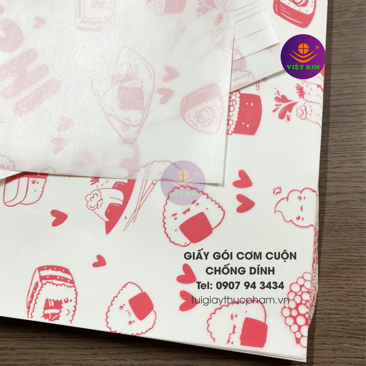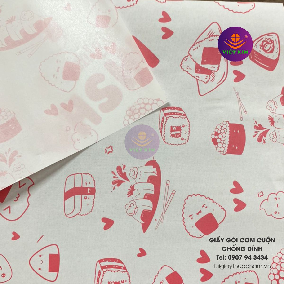 - Được làm từ giấy tráng chống dính 1 mặt – 1 mặt dùng để in họa tiết, thương hiệu, logo.